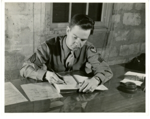 “Me in Army, Santa Monica, 1944” John Adair signing Navajo and Pueblo Silversmiths. The Adair archives includes many photographs, Adair’s papers indicates that he had hoped his book would be published as a large-format art book with color illustrations. That he was unable to fulfill this goal was largely due to the impact of World War II.