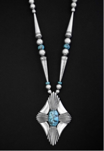 Necklace of silver and Persian turquoise with large pendant, 1977