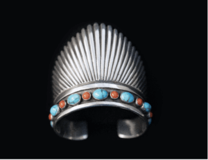 The Wheelwright Museum to represent the story of jewelry in the Southwest as an ever-changing artistic expression linked to individual and communal experiences. Jewelry can hold spiritual meaning, store wealth, convey political ideas, and record moments in history. As a vital indigenous aesthetic expression, it reflects the cultural, economic, and material history of the Southwest.