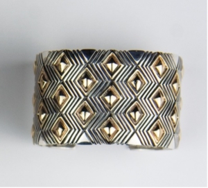 Silver stamped bracelet with 14kt gold appliqué diamonds, 2008