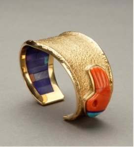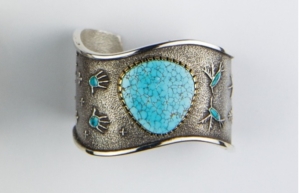 The museum has a commitment to organizing major solo shows, including in 2005 the retrospective Loloma: Beauty is his Name. This highlighted Loloma’s significance, and today the Wheelwright Museum has the capacity to chronicle all periods of this gregarious and ingenious jewelry maker’s life through an outstanding collection of his pieces. Our collection features important numbers of work by major contemporary living artists including Gail Bird (Santo Domingo Pueblo/Laguna Pueblo), Richard Chavez (San Felipe), Larry Golsh (Pala Mission/Cherokee), Yazzie Johnson (Navajo), James Little (Navajo), Norbert Peshlakai (Navajo), McKee Platero (Navajo), Verma Nequatewa (Sonwai, Hopi), Angie Reano Owen (Santo Domingo), Mike Bird-Romero (Ohkay Owingeh), Sylvia Begay Radcliffe (Navajo), Kay Begay Rogers (Navajo), Perry Shorty (Navajo), Denise Wallace (Chugach Sugpiaq), Liz Wallace (Navajo/Maidu/Washo).
