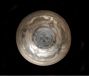 Bowl with a scroll design in black and reddish brown on buff background, ca. 1967 – 1971