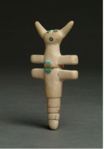 Pottery remains important to Indigenous lifeways throughout the Southwest, used for various purposes such as storage and food preparation. When visitors began traveling on trains in the late eighteenth century, a new market for collectible pottery emerged. Indigenous potters from the Southwest creatively responded to this demand by making portable miniatures of pots and figurines for the market. Contemporary miniatures make up a significant portion of the Wheelwright Museum’s collection, reflecting this change in taste and style.